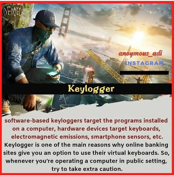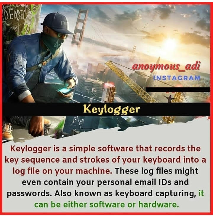| <H2> A keylogger can record instant messages,email and capture any information you type at any time using your keyboard,including usernames password of your social media ac and personal identifying pin etc thats the reason some hacker use it to hack social media account for money extortion. </H2> |
